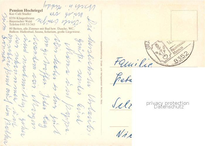 73513395 alte Postkarte Klingenbrunn Pension Hochriegel postalisch gelaufen Erhaltung siehe scans [KathaD81] KatCode: 11110009272149