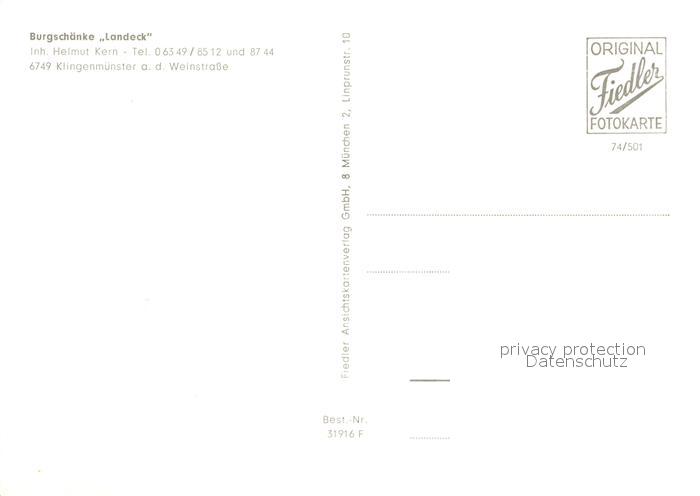 73171770 Klingenmuenster Burgruine Landeck postalisch nicht gelaufen Erhaltung siehe scans [NatalD47] KatCode: 11110007337049