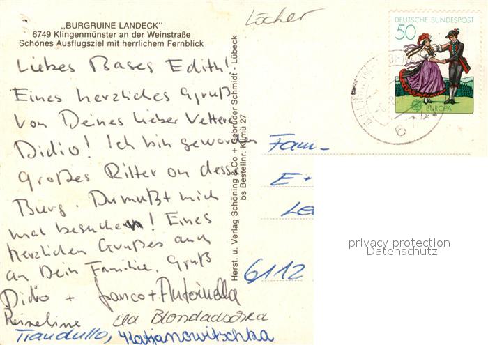 73107449 alte Postkarte Klingenmuenster Burgruine Landeck postalisch gelaufen Erhaltung siehe scans [NatalD47] KatCode: 11110007337049