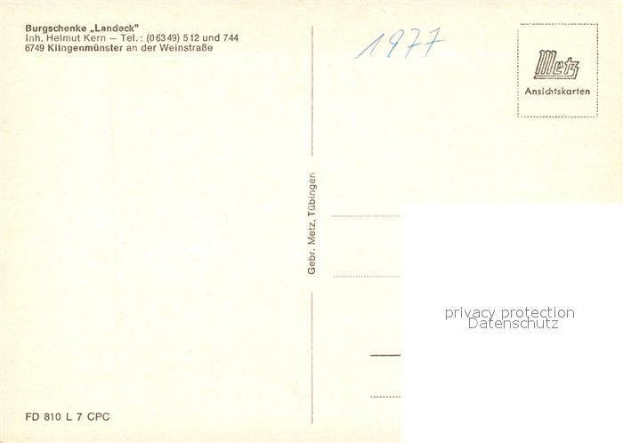 73257543 Klingenmuenster Burgschenke Landeck Burgruine postalisch nicht gelaufen Erhaltung siehe scans [FriedD77] KatCode: 11110007337049