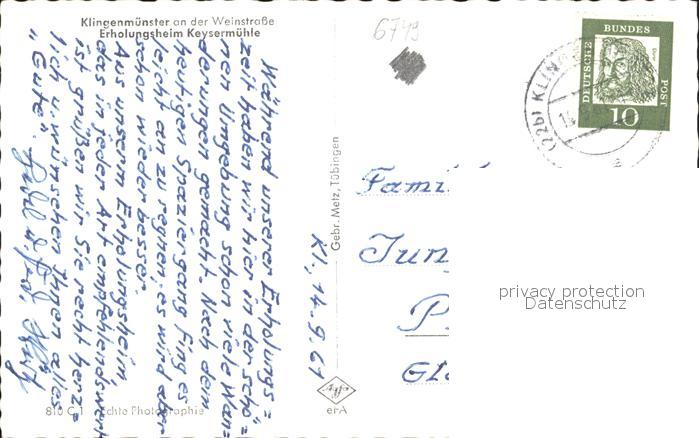72096848 alte Postkarte Klingenmuenster Erholungsheim Keysermuehle postalisch gelaufen Erhaltung siehe scans KatCode: 11110007337049