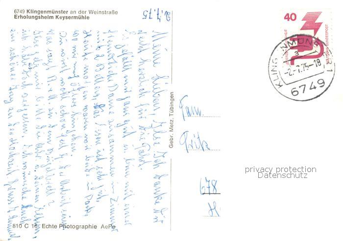 73095959 alte Postkarte Klingenmuenster Erholungsheim Keysermuehle postalisch gelaufen Erhaltung siehe scans [KathaD81] KatCode: 11110007337049
