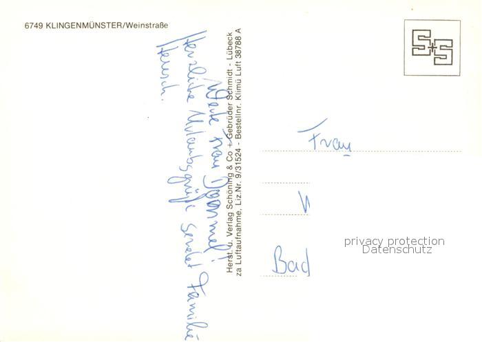 73085230 Klingenmuenster Fliegeraufnahme postalisch nicht gelaufen Erhaltung siehe scans [FriedD77] KatCode: 11110007337049