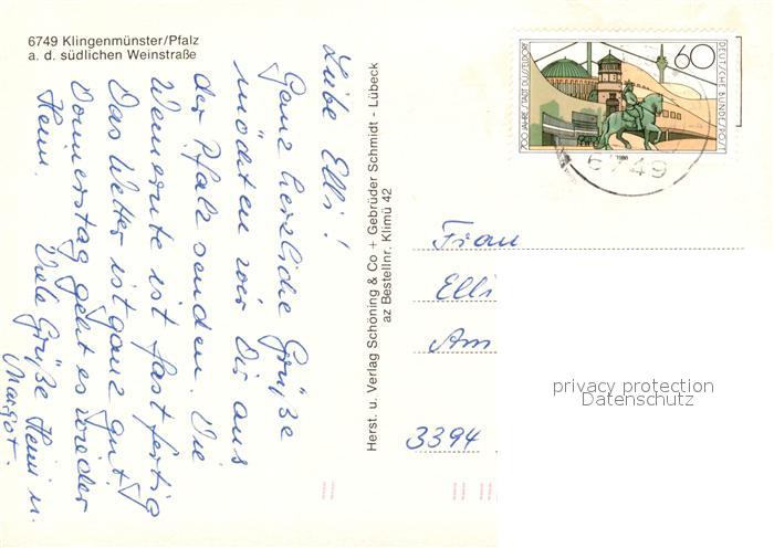 73608920 alte Postkarte Klingenmuenster Kirche Panorama Ortspartie postalisch gelaufen Erhaltung siehe scans [WerneD78] KatCode: 11110007337049