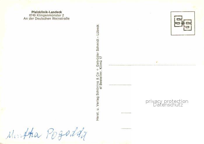 72667347 Klingenmuenster Pfalzklinik Landeck postalisch nicht gelaufen Erhaltung siehe scans [AndreD76] KatCode: 11110007337049