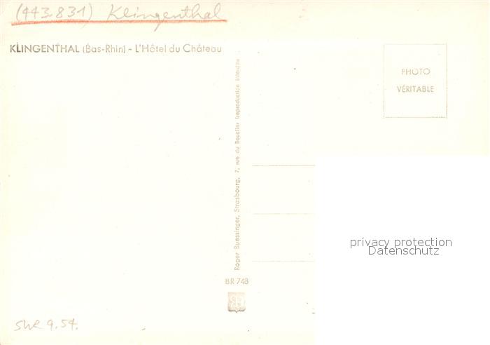 13597896 Klingenthal Bas Rhin Elsass Hotel du Chateau postalisch nicht gelaufen Erhaltung siehe scans [WerneD78] Wern Katcode 11170067867482