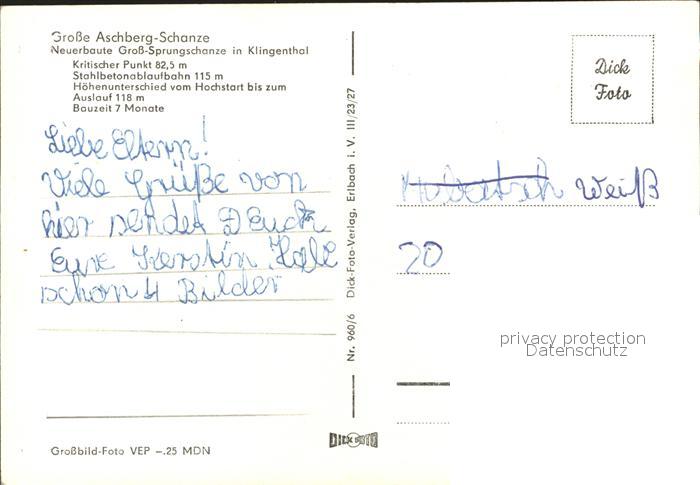 72318746 Klingenthal Vogtland Achsberg-Schanze postalisch nicht gelaufen Erhaltung siehe scans KatCode: 11110014178250