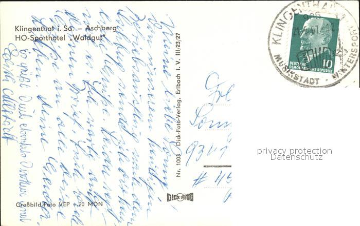 72466241 alte Postkarte Klingenthal Vogtland Aschberg HO Sporthotel Waldgut postalisch gelaufen Erhaltung siehe scans KatCode: 11110014178250