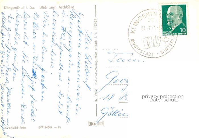72893374 alte Postkarte Klingenthal Vogtland Aschberg postalisch gelaufen Erhaltung siehe scans [PaolaD17] KatCode: 11110014178250