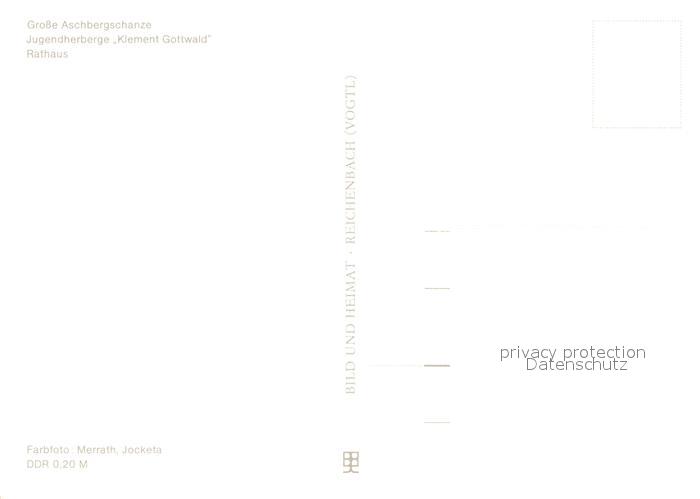 73112059 Klingenthal Vogtland Aschbergschanze Jugendherberge Klement Gottwald Rathaus postalisch nicht gelaufen Erhaltung siehe scans [NatalD47] KatCode: 11110014178250