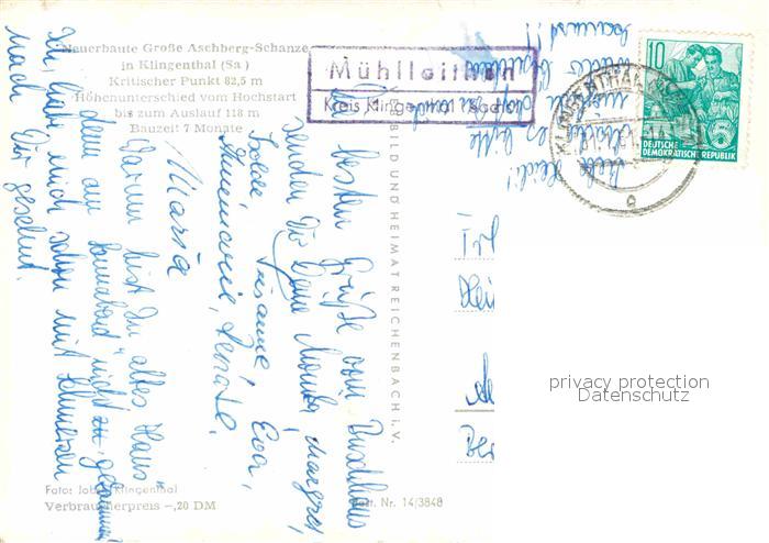 72702204 alte Postkarte Klingenthal Vogtland Aschbergschanze postalisch gelaufen Erhaltung siehe scans [LiesaD40] KatCode: 11110014178250