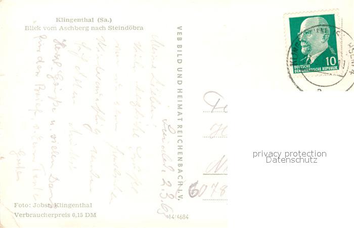 73248491 alte Postkarte Klingenthal Vogtland Blick vom Aschberg nach Steindroeba postalisch gelaufen Erhaltung siehe scans [WerneD78] KatCode: 11110014178250