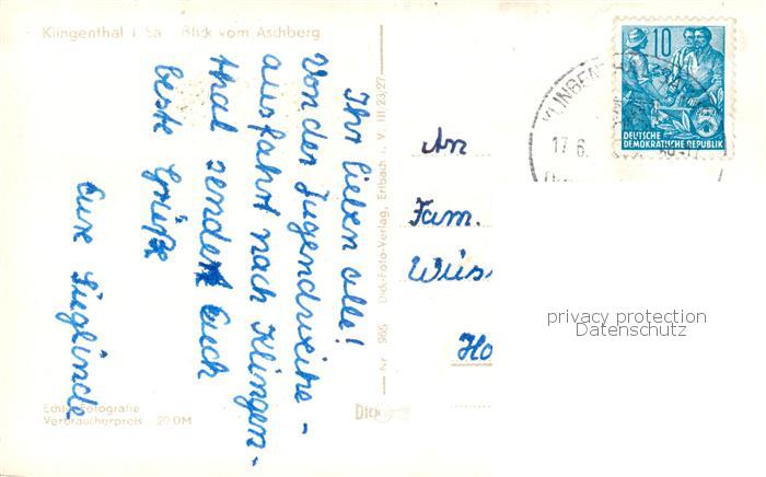 73801661 alte Postkarte Klingenthal Vogtland Blick vom Aschberg postalisch gelaufen Erhaltung siehe scans [WerneD78] KatCode: 11110014178250