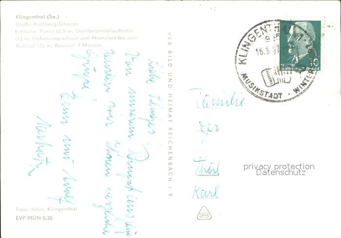 72343462 alte Postkarte Klingenthal Vogtland Grosse Aschberg Schanze Skispringen Wintersportplatz postalisch gelaufen Erhaltung siehe scans KatCode: 11110014178250
