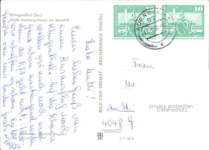 72227779 alte Postkarte Klingenthal Vogtland Grosse Aschbergschanze mit Sessellift postalisch gelaufen Erhaltung siehe scans KatCode: 11110014178250