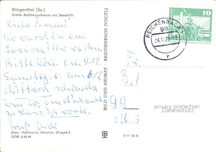 72291618 alte Postkarte Klingenthal Vogtland Grosse Aschbergschanze Sessellift postalisch gelaufen Erhaltung siehe scans KatCode: 11110014178250