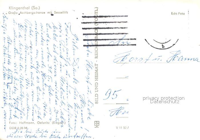 73095135 alte Postkarte Klingenthal Vogtland Grosse Aschbergschanze Sessellift postalisch gelaufen Erhaltung siehe scans [KathaD81] KatCode: 11110014178250