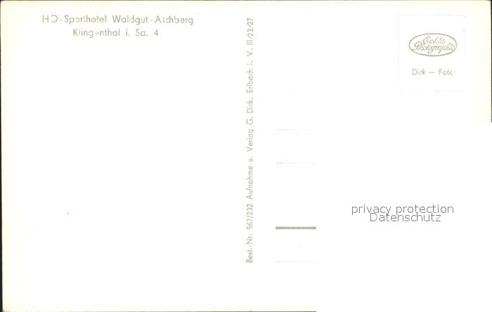 72113415 Klingenthal Vogtland HO Sporthotel Waldgut Aschberg postalisch nicht gelaufen Erhaltung siehe scans KatCode: 11110014178250