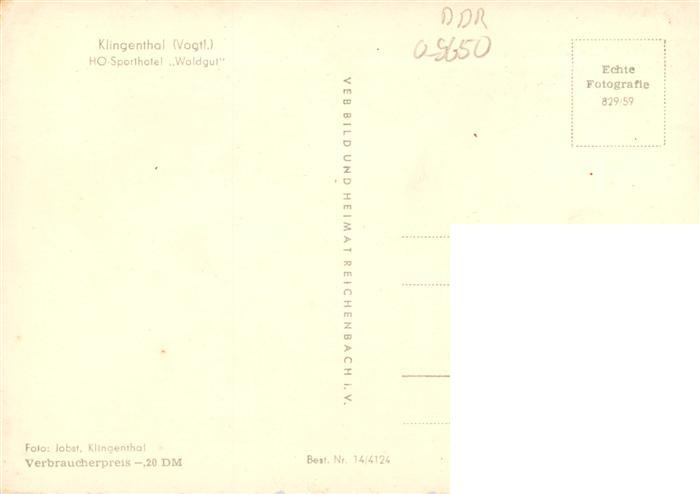 73947309 Klingenthal Vogtland HO Sporthotel Waldgut postalisch nicht gelaufen Erhaltung siehe scans [WerneD78] KatCode: 11110014178250