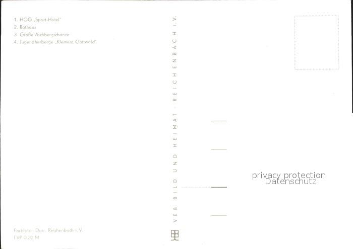 72315205 Klingenthal Vogtland HOG Sport Hotel Rathaus Gr Aschbergschanze Jugendherberge Klement Gottwald postalisch nicht gelaufen Erhaltung siehe scans KatCode: 11110014178250