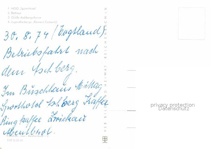 72654405 Klingenthal Vogtland HOG Sport Hotel Rathaus Grosse Aschbergschanze Jugendherberge Klement Gottwald postalisch nicht gelaufen Erhaltung siehe scans [WerneD78] KatCode: 11110014178250