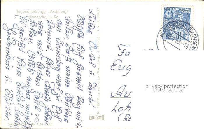 72392506 alte Postkarte Klingenthal Vogtland Jugendherberge Aschberg postalisch gelaufen Erhaltung siehe scans KatCode: 11110014178250