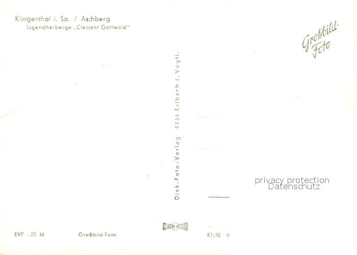 73722402 Klingenthal Vogtland Jugendherberge Clement Gottwald postalisch nicht gelaufen Erhaltung siehe scans [WerneD78] KatCode: 11110014178250
