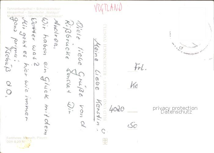 72328058 alte Postkarte Klingenthal Vogtland Klingenthal Sporthotel Muehlleiten Hotel Buschhaus postalisch gelaufen Erhaltung siehe scans KatCode: 11110014178250