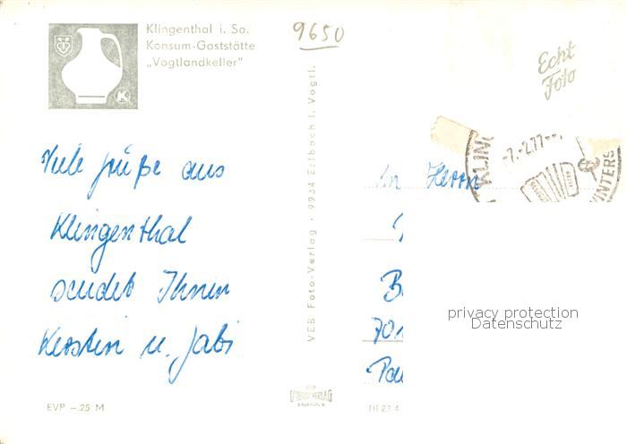 73755396 alte Postkarte Klingenthal Vogtland Konsum Gaststaette Vogtlandkeller Gastraeume Panorama postalisch gelaufen Erhaltung siehe scans [FriedD77] KatCode: 11110014178250