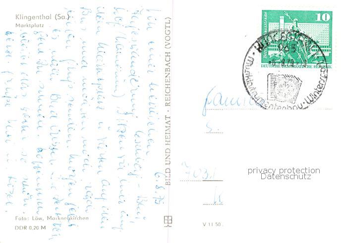 73854060 alte Postkarte Klingenthal Vogtland Marktplatz postalisch gelaufen Erhaltung siehe scans [WerneD78] KatCode: 11110014178250