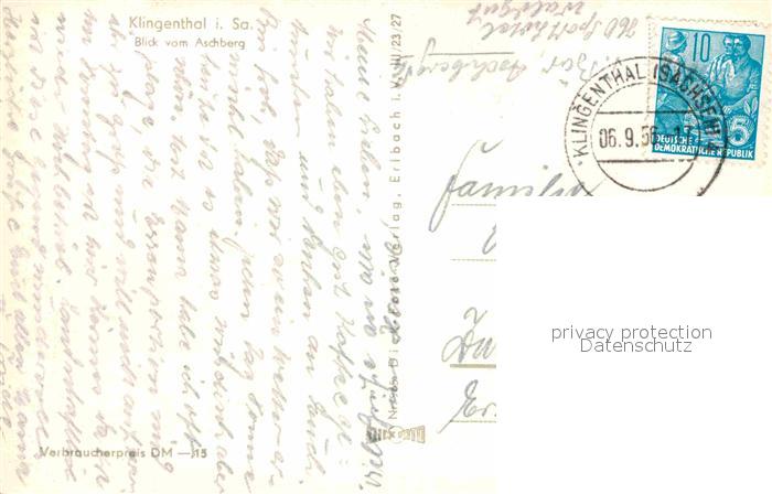 72728860 alte Postkarte Klingenthal Vogtland Panorama Blick vom Aschberg postalisch gelaufen Erhaltung siehe scans [FriedD77] KatCode: 11110014178250