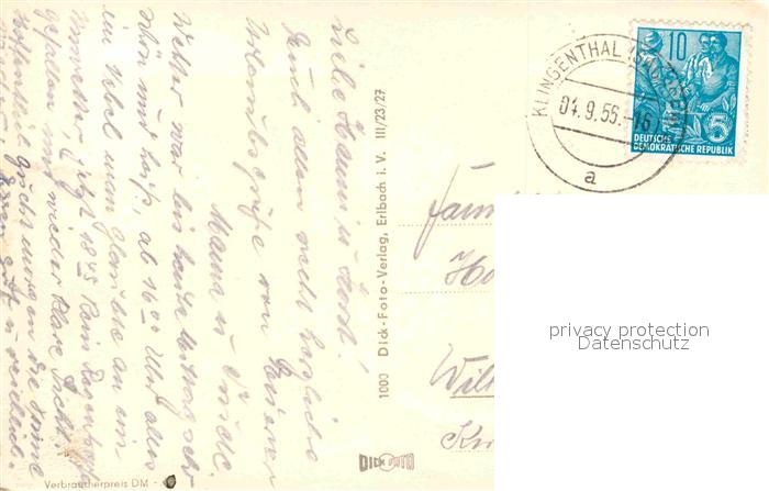 72728863 alte Postkarte Klingenthal Vogtland Panorama Blick zum Aschberg Sporthotel Steindoebra postalisch gelaufen Erhaltung siehe scans [FriedD77] KatCode: 11110014178250
