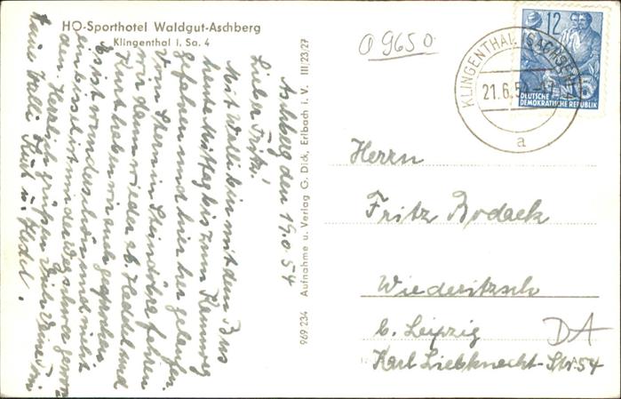 40974679 Klingenthal Vogtland Sort Hotel Waldgut Aschberg KatCode 11110014178250
