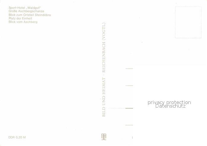 72616783 Klingenthal Vogtland Sport Hotel Waldgut Aschbergschanze Steindoebra Platz der Einheit Blick vom Aschberg postalisch nicht gelaufen Erhaltung siehe scans [WerneD78] KatCode: 11110014178250