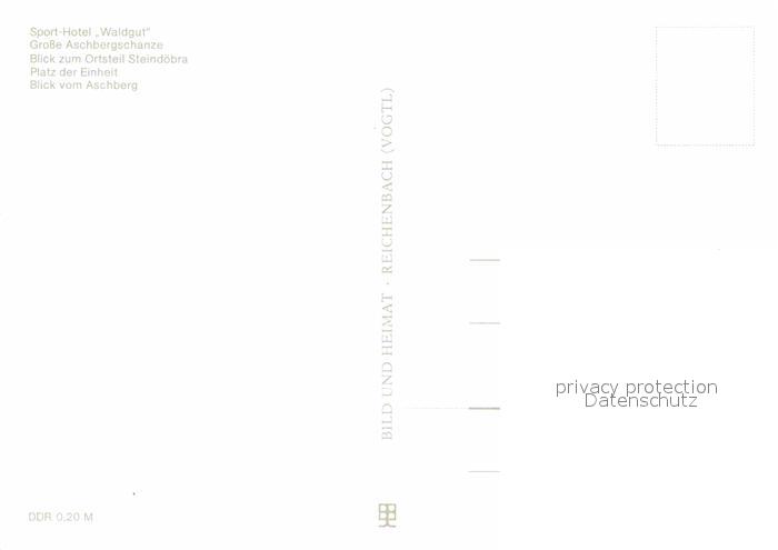 72617221 Klingenthal Vogtland Sport Hotel Waldgut Gr Aschbergschanze Steindoebra Platz der Einheit Aschbergblick postalisch nicht gelaufen Erhaltung siehe scans [WerneD78] KatCode: 11110014178250
