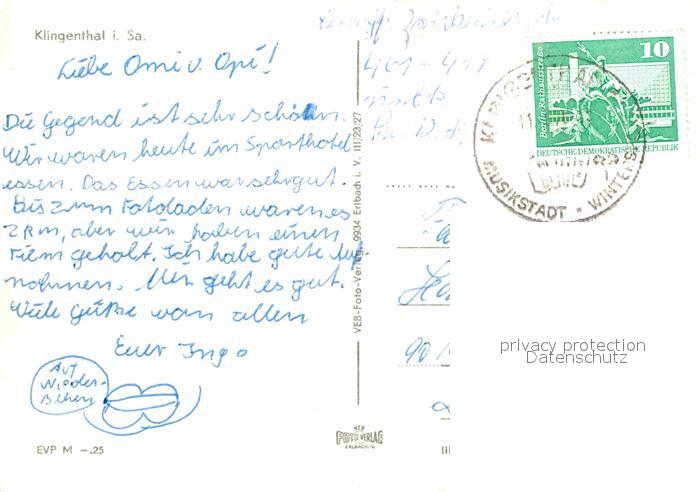72730322 alte Postkarte Klingenthal Vogtland Sporthotel Waldgut Aschberg Georgenthal Aschbergschanze postalisch gelaufen Erhaltung siehe scans [LiesaD40] KatCode: 11110014178250