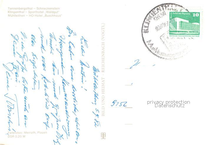 73052474 alte Postkarte Klingenthal Vogtland Tannenbergsthal Schneckenstein HO-Hotel Buschhaus postalisch gelaufen Erhaltung siehe scans [NatalD47] KatCode: 11110014178250