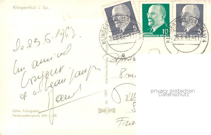 73556577 alte Postkarte Klingenthal Vogtland postalisch gelaufen Erhaltung siehe scans [LiesaD40] KatCode: 11110014178250