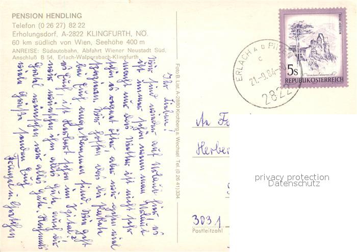73320013 alte Postkarte Klingfurth Pension Hendling Landschaftspanorama postalisch gelaufen Erhaltung siehe scans [FriedD77] KatCode: 11390122032333