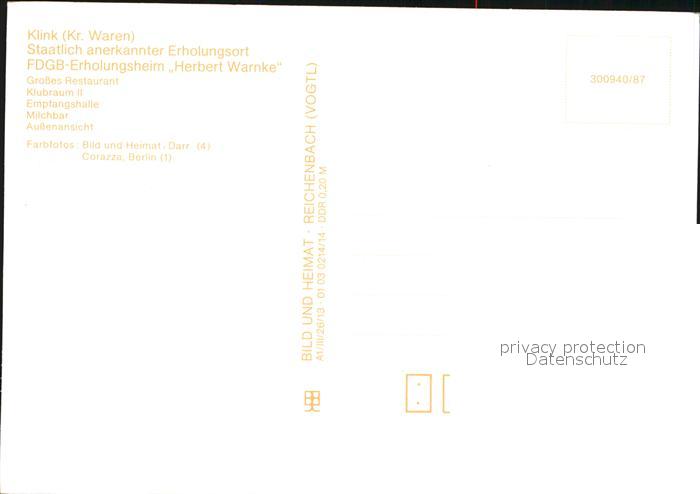 72606775 Klink Waren Erholungsheim Herbert Warnke postalisch nicht gelaufen Erhaltung siehe scans [LiesaD40] KatCode: 11110013056030