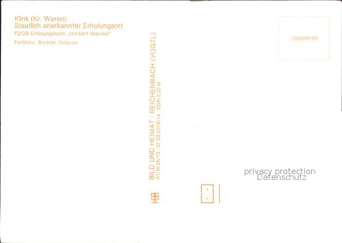 72602645 Klink Waren Erholungsheim Herbert Warnke postalisch nicht gelaufen Erhaltung siehe scans [LiesaD40] KatCode: 11110013056030