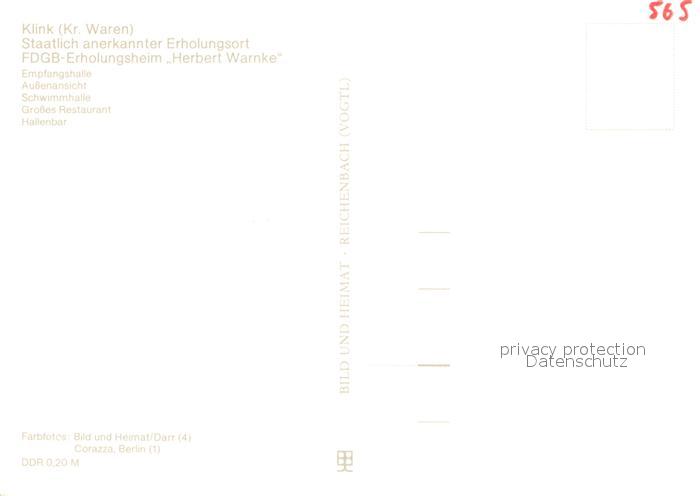 73174786 Klink Waren Erholungsheim Herbert Warnke postalisch nicht gelaufen Erhaltung siehe scans [NatalD47] KatCode: 11110013056030