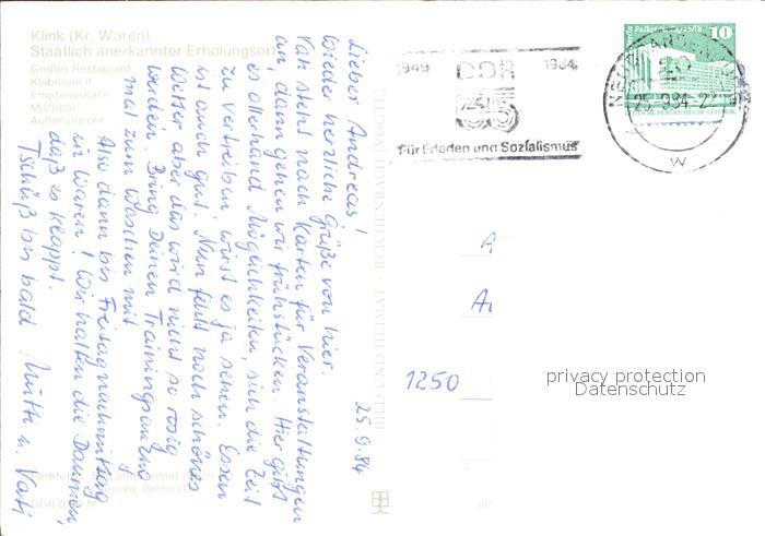72382752 alte Postkarte Klink Waren Erholungsheim Herbert Warnke postalisch gelaufen Erhaltung siehe scans KatCode: 11110013056030