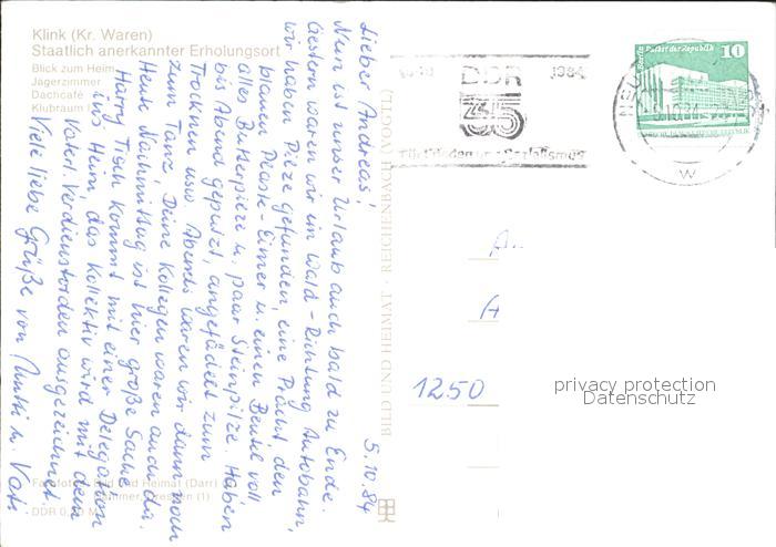72382750 alte Postkarte Klink Waren Erholungsheim Herbert Warnke postalisch gelaufen Erhaltung siehe scans KatCode: 11110013056030