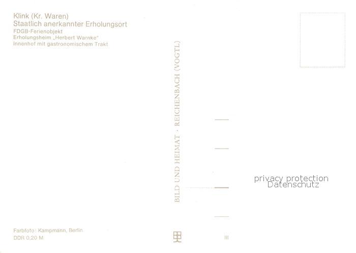 72987611 Klink Waren Erholungsheim Herbert Warnke postalisch nicht gelaufen Erhaltung siehe scans [LiesaD40] KatCode: 11110013056030