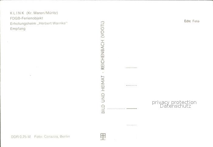 72114929 Klink Waren Erholungsheim Herbert Warnke Empfang postalisch nicht gelaufen Erhaltung siehe scans KatCode: 11110013056030