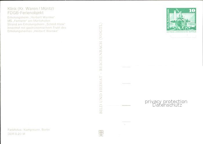 72382756 Klink Waren Erholungsheim Herbert Warnke MS Fontane Muritzhafen postalisch nicht gelaufen Erhaltung siehe scans KatCode: 11110013056030