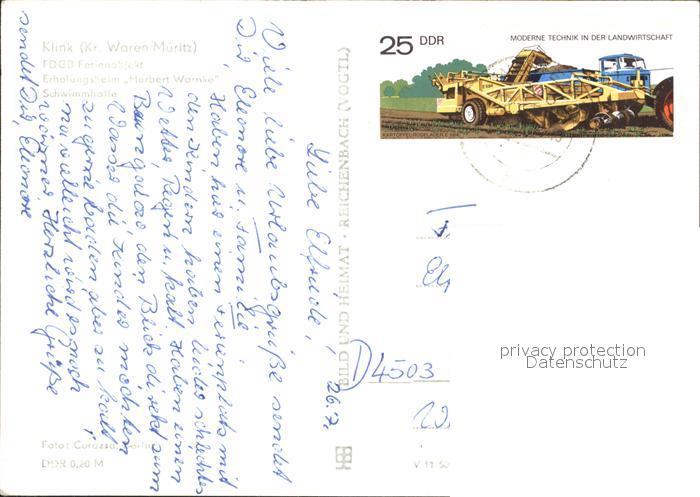 72014676 alte Postkarte Klink Waren Erholungsheim Herbert Warnke Schwimmhalle postalisch gelaufen Erhaltung siehe scans KatCode: 11110013056030