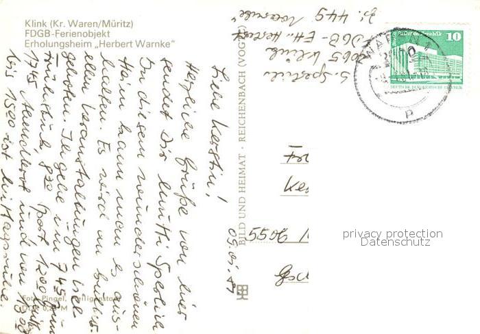 73293923 alte Postkarte Klink Waren Erholungsheim Herbert Warnke postalisch gelaufen Erhaltung siehe scans [LiesaD40] KatCode: 11110013056030