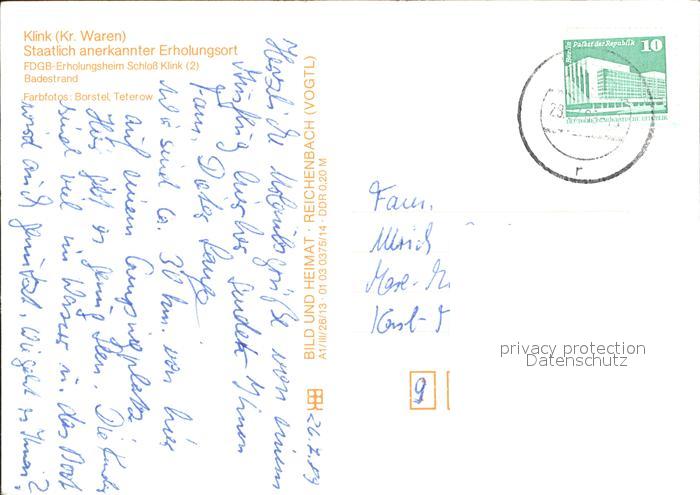 72383243 alte Postkarte Klink Waren Erholungsheim Schloss Klink Strand postalisch gelaufen Erhaltung siehe scans KatCode: 11110013056030